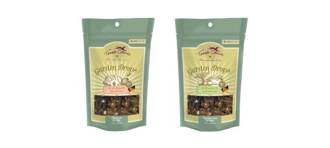 まるでお庭から摘み取ったばかりのような新鮮な野菜の香りが漂うサクサク食感のベジタブルと、まるでもぎたての新鮮なフルーツの香りが漂うサクサク食感のフルーツクッキーです。