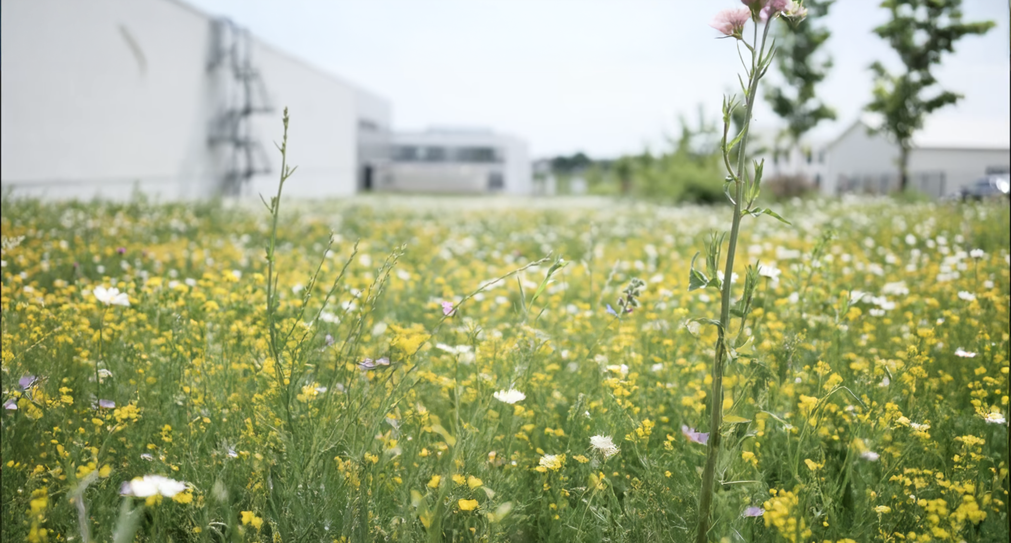 また、地域再生への貢献として、自然豊かな草花や牧草がテラカニス生産施設の屋根全体に植えられ、